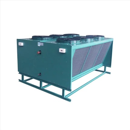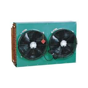 Den mest udbredte type globalt. Omgivende luft presser over ribbespiraler af en eller flere ventilatorer. Der er ikke behov for vandinfrastruktur , hvilket gør installationen enkel og vedligeholdelsesomkostningerne lave. Brozercools luftkølede kondensatorserie bruger højeffektive kobberrørs-aluminium-finnespoler med EC-ventilatormotorer, hvilket opnår specifikke varmeafvisningsrater over 1,8 kW/m².